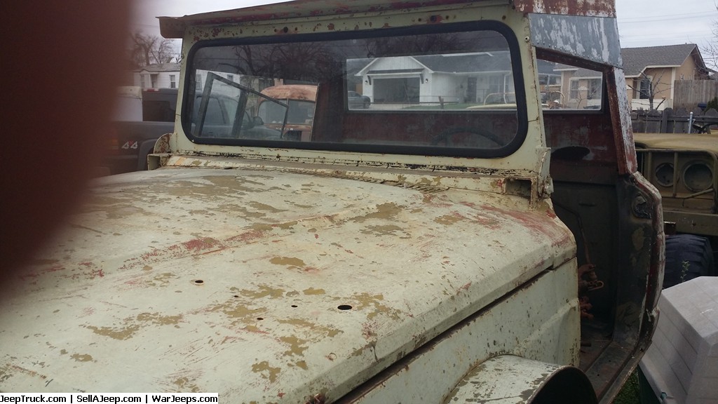 Cab, right door, windshield frame, hood and front sheet metal only, on good clean rolling frame. Good solid cab, has shop built hard top.
