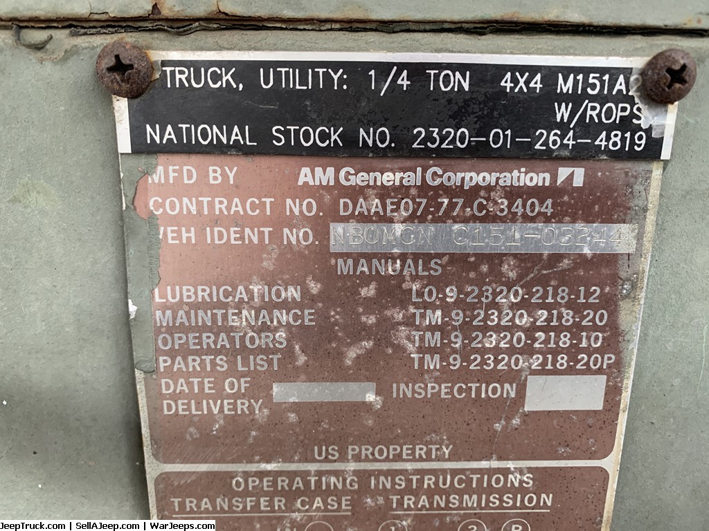 DISCLAIMER: The information in this ad is provided by the seller and not WarJeeps.com. The prices, terms, and