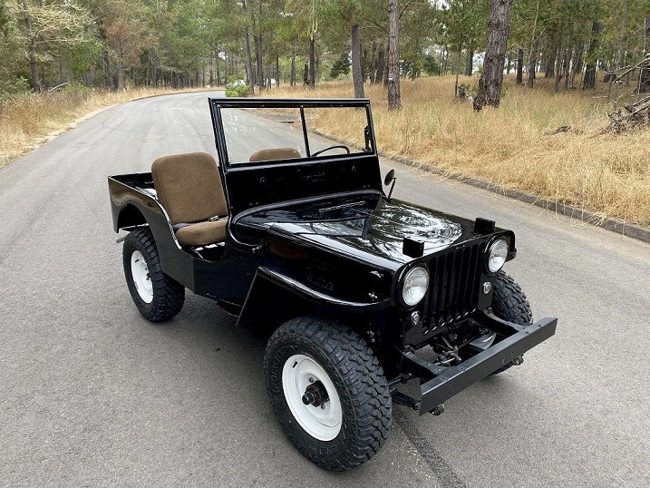 refinished in black over brown leather. Power is provided by a 134ci L-head inline-four that was rebuilt, with a three-speed manual transmission and a dual-range twin-stick transfer case. and 16" wheels mounted with Forceum M/T tires.
