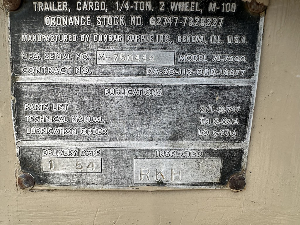 1954 Dunbar M100 Trailer - Military Jeeps For Sale