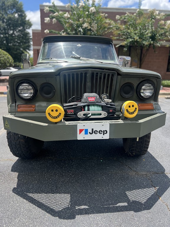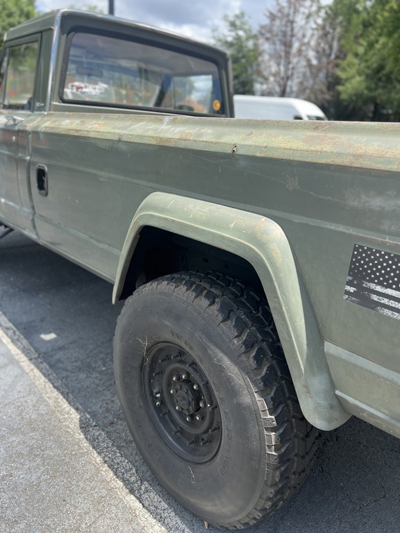 4spd T-18 with Granny 1st gear. AMC 360. Truck fires right up and runs great. This truck was originally used as a Military Police truck in the Navy. Has a military look with great patina not rust. New Warn winch with dual KC highlighters on front bumper. As big as this truck is it still rides smooth even at highway speeds.