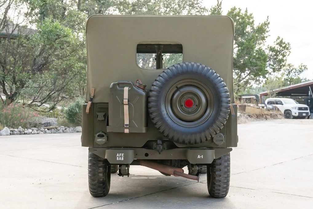 This 1952 Willys M38A1 has been fully restored using all original parts. The restoration included a complete overhaul of the Willys 134.2ci Hurricane F-head inline-four engine, three-speed manual transmission, dual-range transfer case, both differentials, and all four hubs.