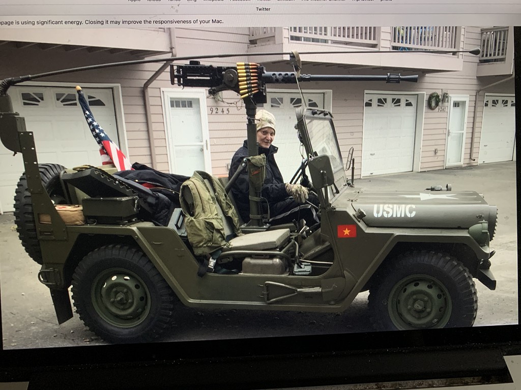 Restored M151A2 Military Jeep located in Anchorage, Alaska. The engine is rebuilt, tires are new, and there are numerous spare parts including two PRC25 radios. The Jeep is priced at $15K. The semiautomatic Ma Deuce can be purchased separately for $25K.